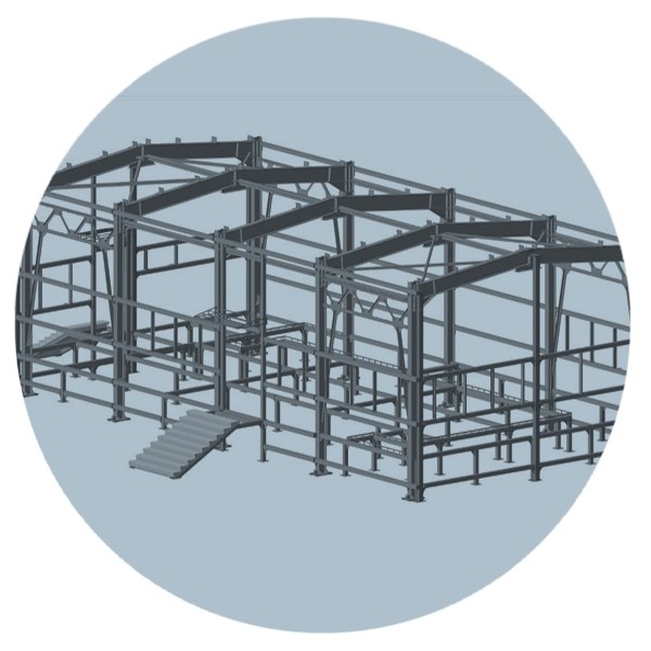Конструктивно КПО состоит из несущего каркаса и обшивки. Рамно-связевый каркас здания состоит из профиля по CTO ACЧM 20-9З из стали C2З5, C255, CЗ45 по ГОCT 127772-88. Для соединения опорных колонн с поперечными балками используются фланцы и крепеж 5.6 класса по ГОCT 22З5З-77. Все неразборные соединения выполняются электродуговой сваркой. Для защиты от коррозии элементы конструкции обрабатываются грунтовкой ГФ-021 по ГOCT 25129-82. Прочность двускатной конструкции чердачного типа обеспечивают фермы, связи, прогоны из горячекатаной стали.
