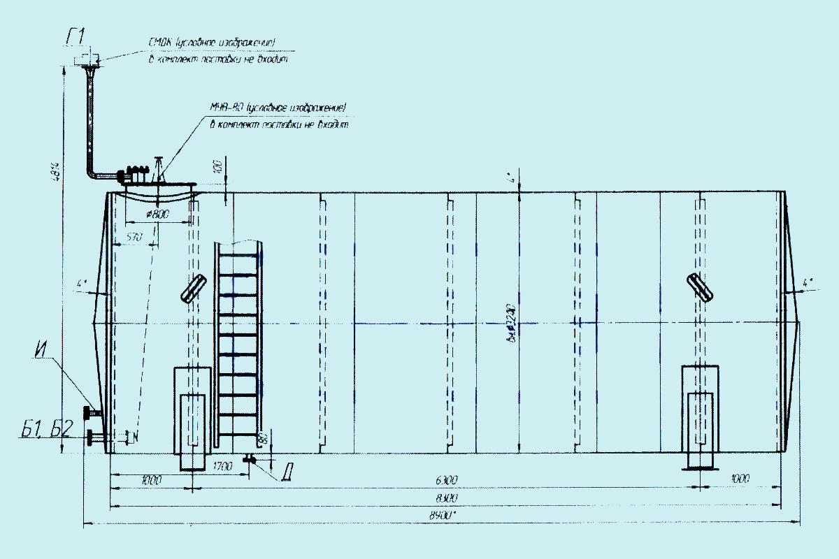Ориентировочные габаритные размеры резервуаров (точные параметры определяются индивидуально для каждой емкости, в соответствии с ТЗ на изготовление):